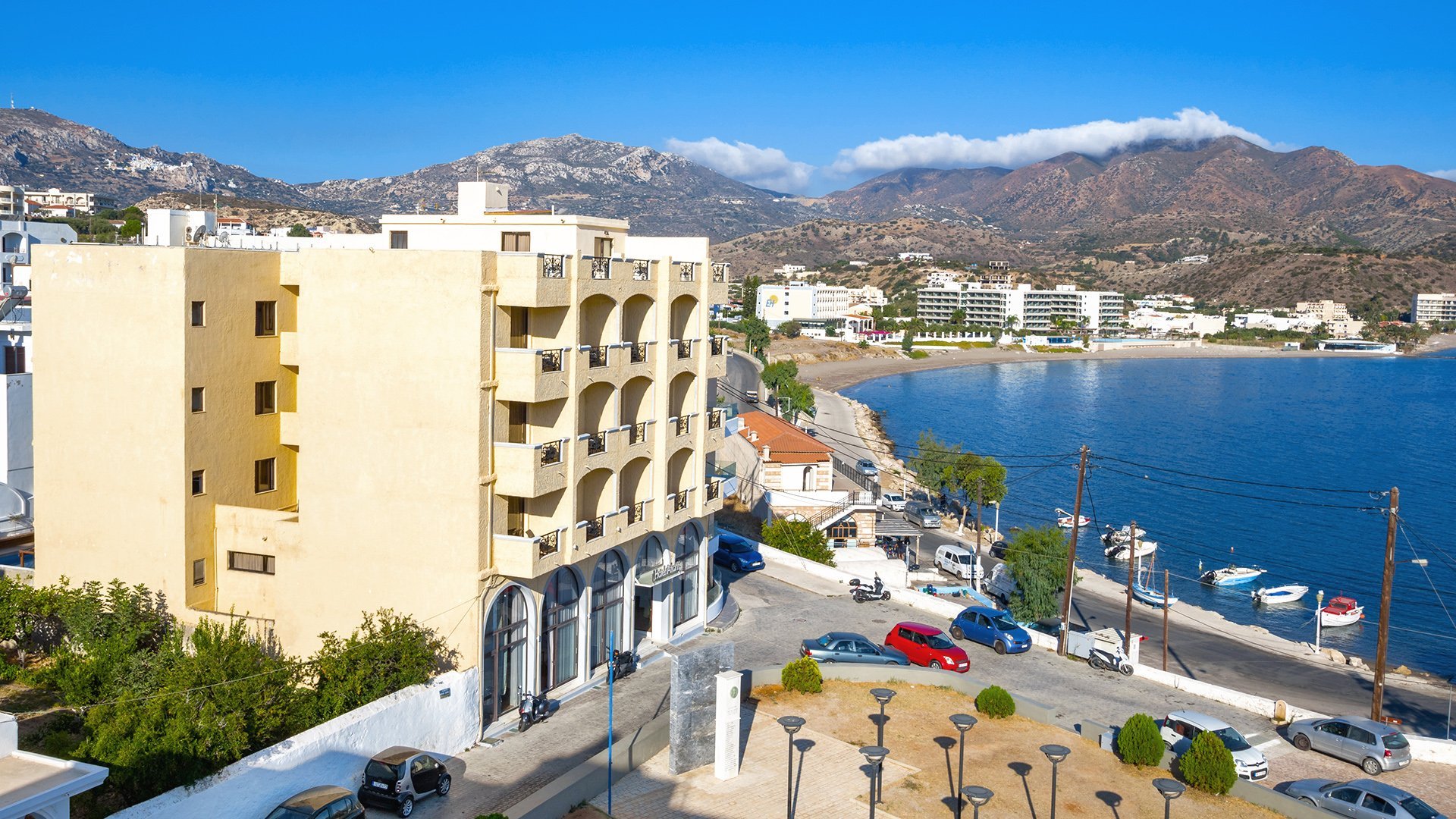 Kameralny, położony na greckiej wyspie Karpathos, która kusi spokojem, urokliwymi krajobrazami i tawernami pełnymi przysmaków. Niedaleko stąd do plaży, centrum i okolicznych atrakcji - Muzeum Archeologicznego Karpathos i ruin kaplicy Agia Fotini. Panoramiczny widok na błękit Morza Egejskiego i tylko 37 pokoi to kolejne atuty tego miejsca, a dodatkowo Goście znajdą tu także niewielki basen zewnętrzny, idealny na relaks. ...