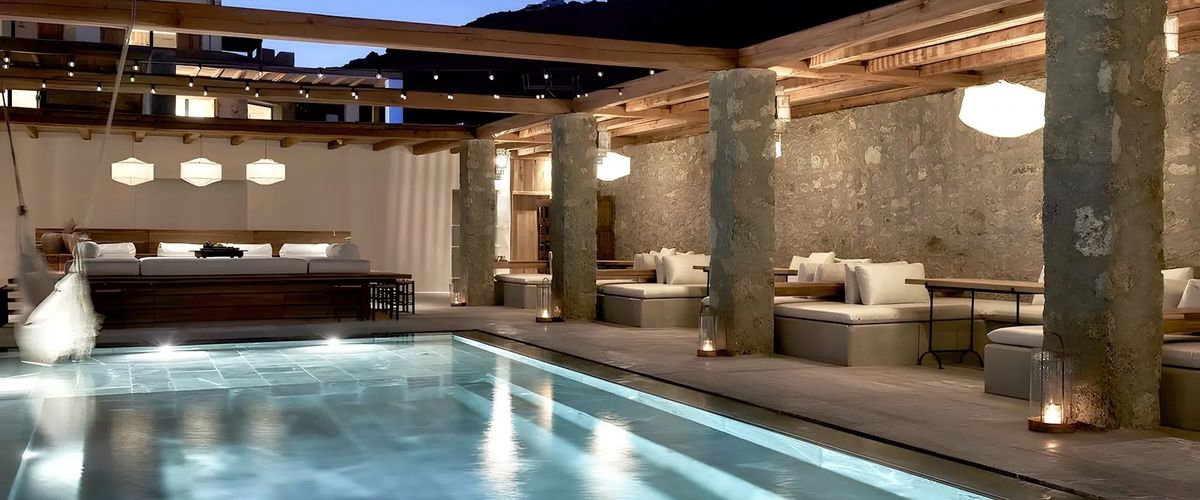 Idealny na romantyczne wakacje w miejscu, gdzie połączenie architektury w stylu Cyklad z dbałością o szczegóły i surowością krajobrazu gwarantuje niezapomniane wrażenia. Praktykując zasadę zero-waste i podejście eco-friendly oraz korzystając z usług lokalnych dostawców i odtwarzając tradycyjne greckie przepisy, szef kuchni zaprasza do spróbowania pysznych dań w restauracji. Pozwól sobie na relaks w basenie, odwiedź kino, a jeśli chcesz zadbać również o sylwetkę – czeka na Ciebie siłownia. Ucieknij od codzienności na Mykonos i zanurz się w luksusowej i kameralnej atmosferze!