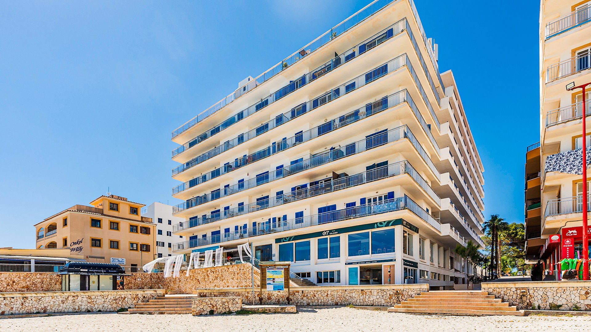Hiszpańskie słońce, pierwsza linia brzegowa i niezwykły majorkański klimat – brzmi jak plan na urlop? Jeśli tak, to zapraszamy na Baleary! Położony tuż przy pięknej zatoce, jest świetnym wyborem na spokojny wypoczynek. Możesz zrelaksować się w basenie, odpocząć na leżaku czy podziwiać widoki na zatokę z restauracji. Jeśli lubisz morskie klimaty, nie może zabraknąć Cię na okolicznych plażach, a dobrych wrażeń z pewnością dostarczą też spacery po urokliwej okolicy. Sjestę czas zacząć! ...