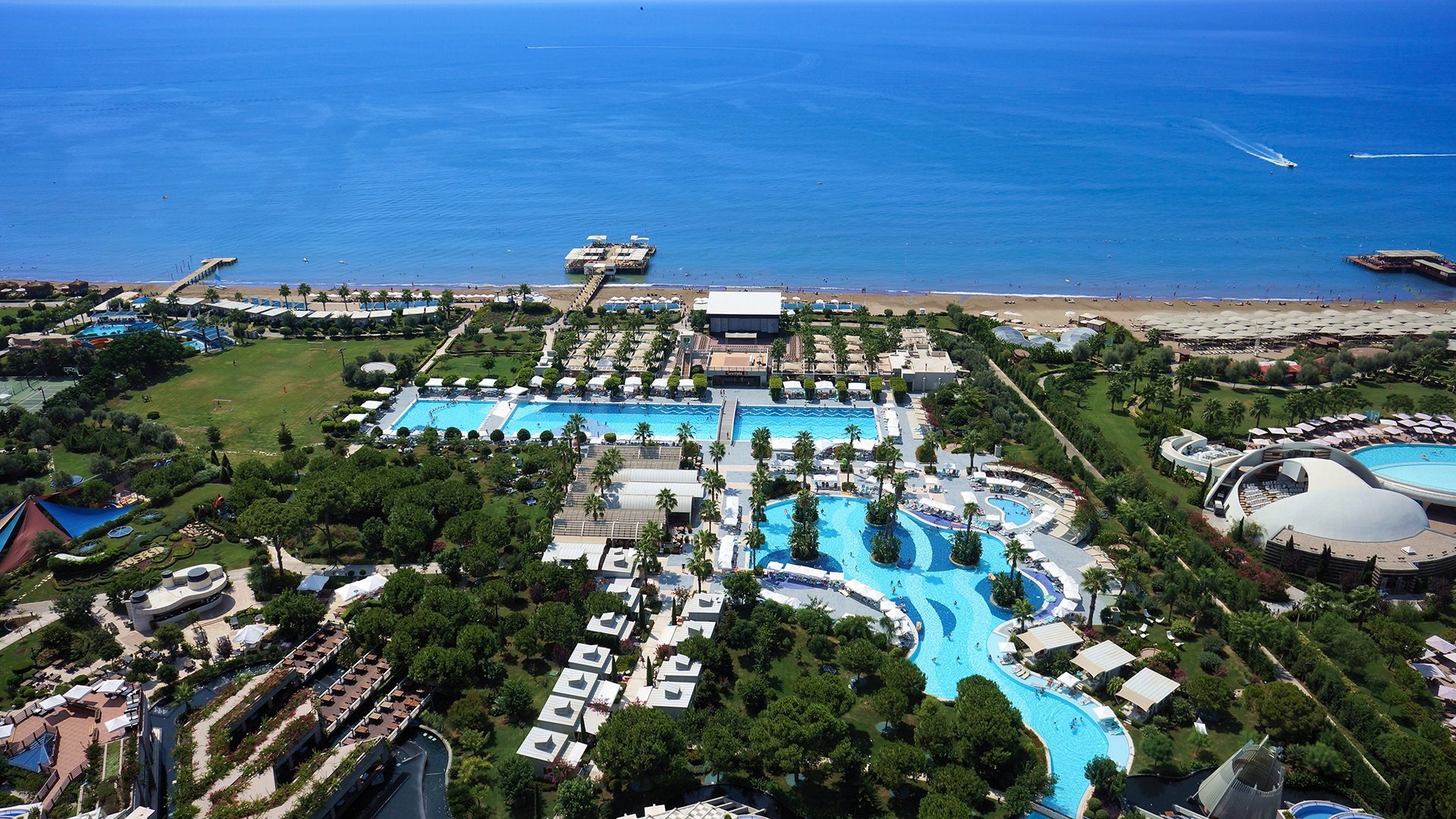 Położony tuż przy piaszczystej plaży, oferuje pełen wachlarz atrakcji, zarówno dla dorosłych, jak i dzieci. Dzień możesz spędzić na opalaniu i kąpieli w morzu lub zostać w hotelu – na miejscu czeka 7 basenów, w tym 1 ze zjeżdżalniami, obok którego nikt nie przejdzie obojętnie. Po intensywnym dniu w promieniach tureckiego słońca odpoczniesz w przestronnych i komfortowych pokojach. Chwalony za bogatą formułę plus all inclusive 24h oraz miłą i pomocną obsługę doskonale sprawdzi się na rodzinny wypoczynek pełen zabawy i uśmiechu....